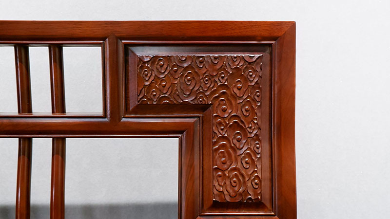 銘仁坊家具均為核桃木制作。核桃木,和道,木中君子,如玉溫潤,高古拙璞,內(nèi)斂含蓄,紋理若隱如現(xiàn),與微黃的顏色相匹配。