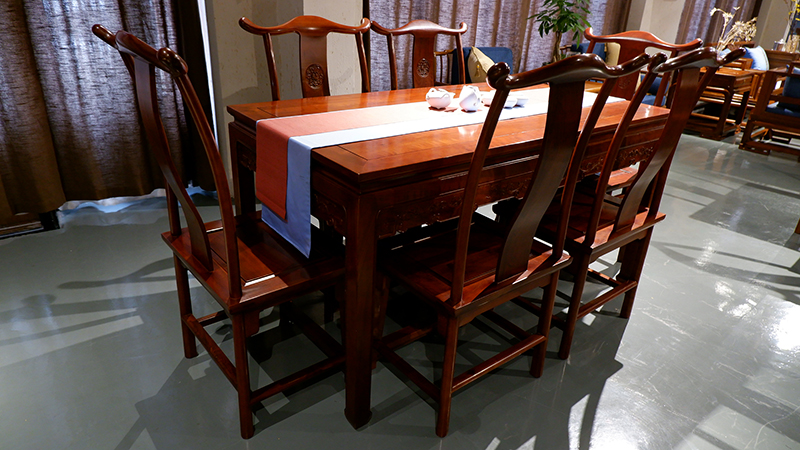 銘仁坊家具均為核桃木制作。核桃木,和道,木中君子,如玉溫潤(rùn),高古拙璞,內(nèi)斂含蓄,紋理若隱如現(xiàn),與微黃的顏色相匹配。